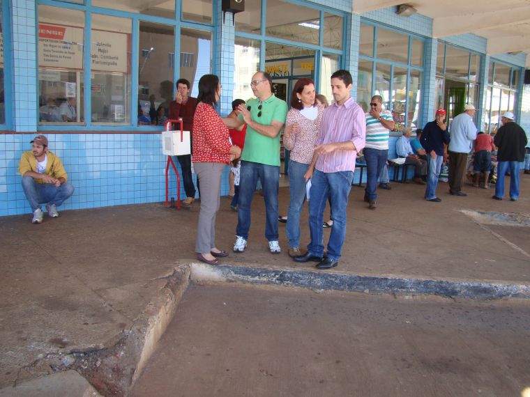 Vereador Junior Gurtat e prefeita Sirlene Svartz vistoriam a estação rodoviária .